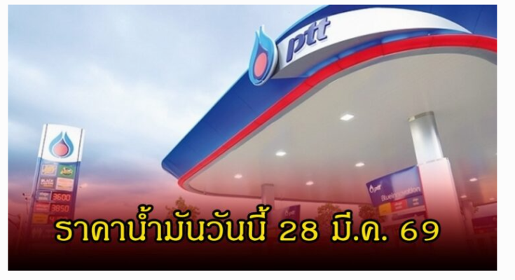 ราคาน้ำมันวันนี้ 28 มี.ค. 69 ราคาน้ำมันดีเซล ราคาน้ำมันเบนซิน แก๊สโซฮอล์ ราคาน้ำมันทุกชนิด ราคาน้ำมันล่าสุด จาก ปั๊มน้ำมัน ปตท. , บางจาก , เชลล์ (Shell) และ PT มีดังนี้