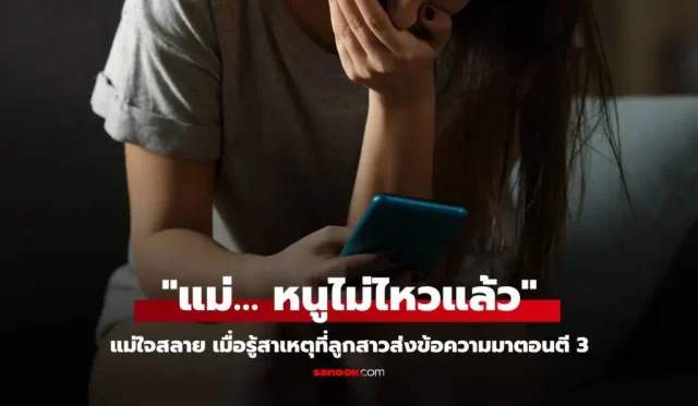ใต้ภาพนั้น มีข้อความสั้น ๆ เพียงประโยคเดียวว่า “แม่… หนูไม่ไหวแล้ว”